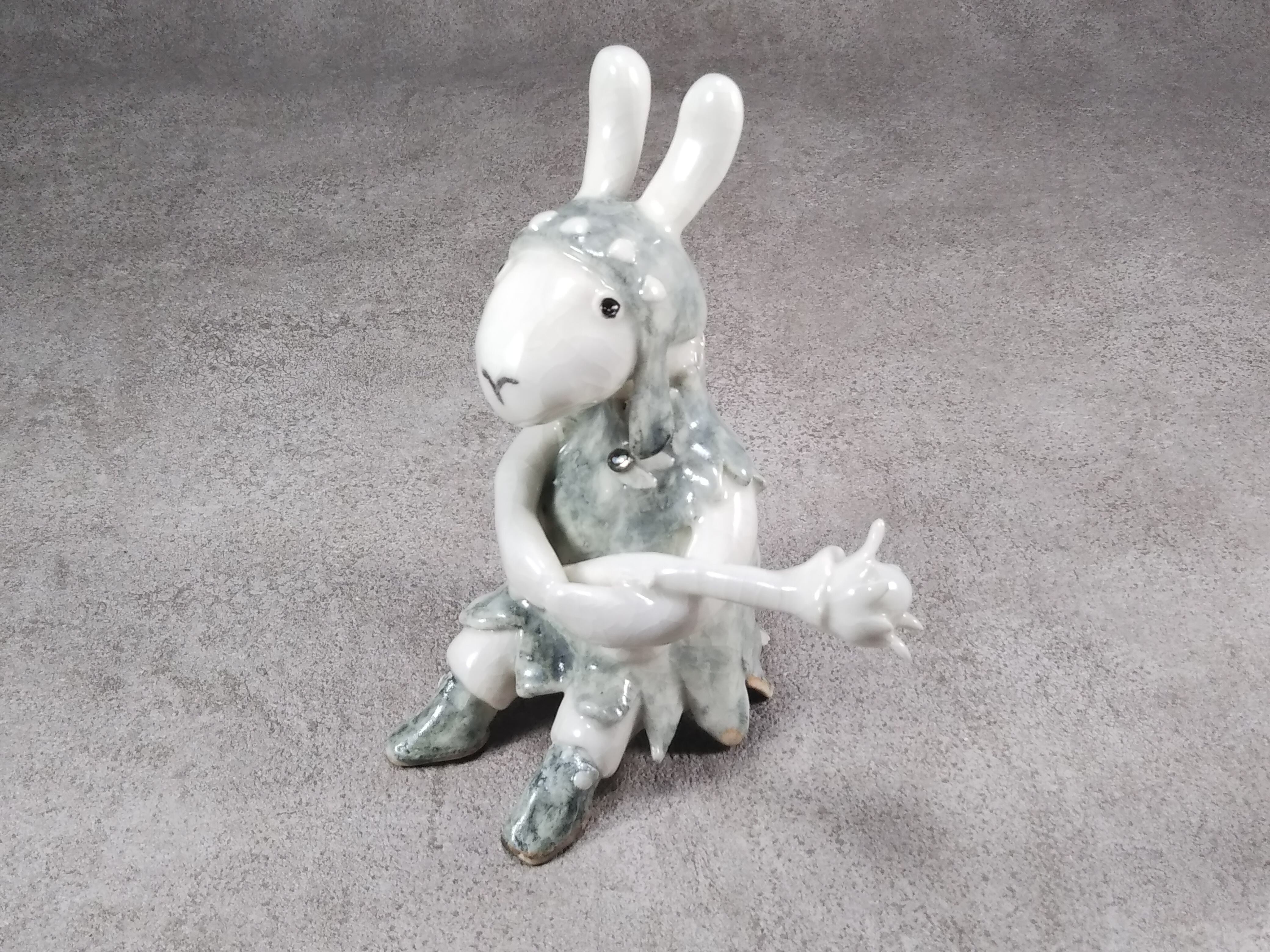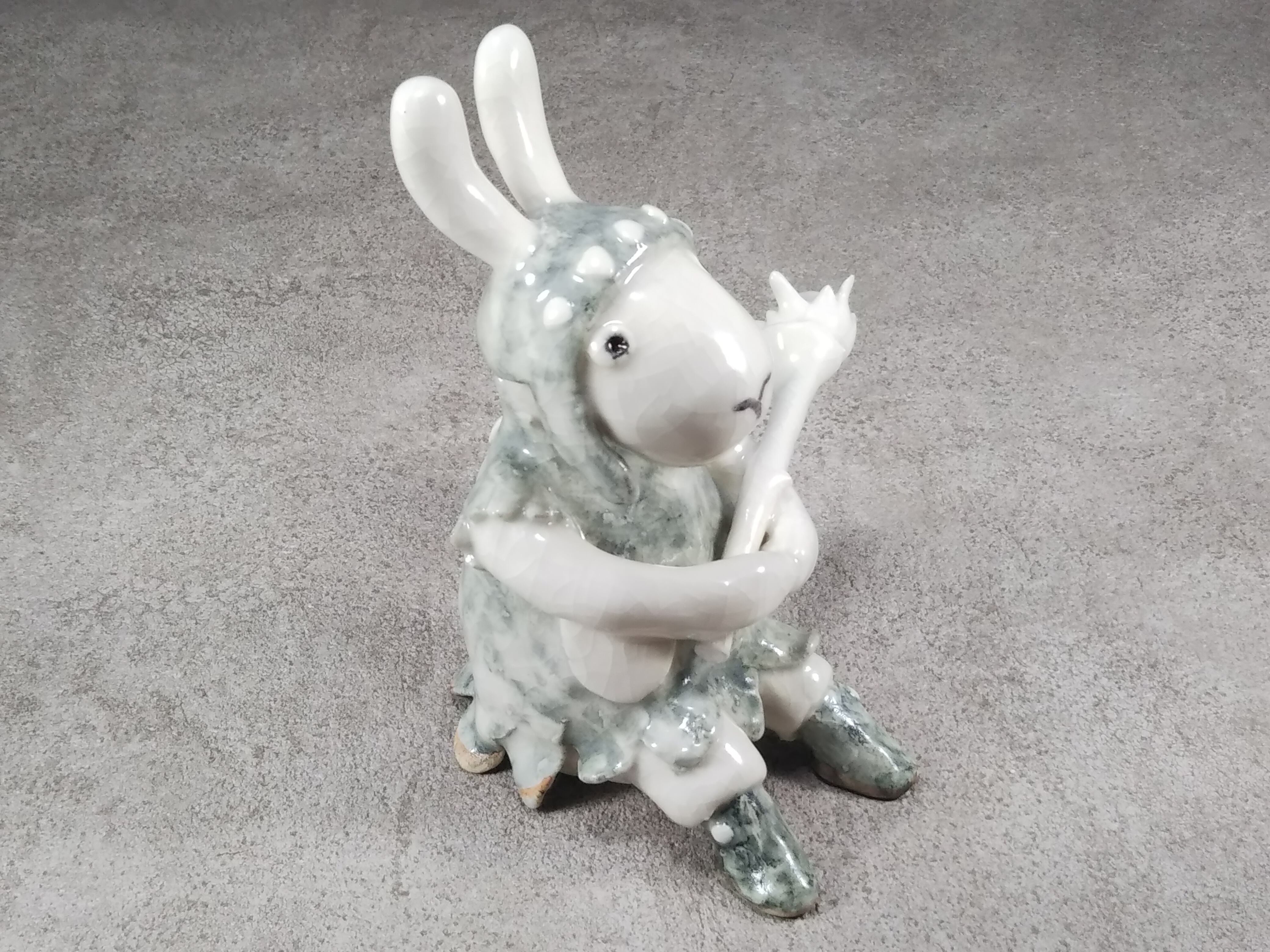 肌色はアイボリーでグレーで下絵付けで着彩しています