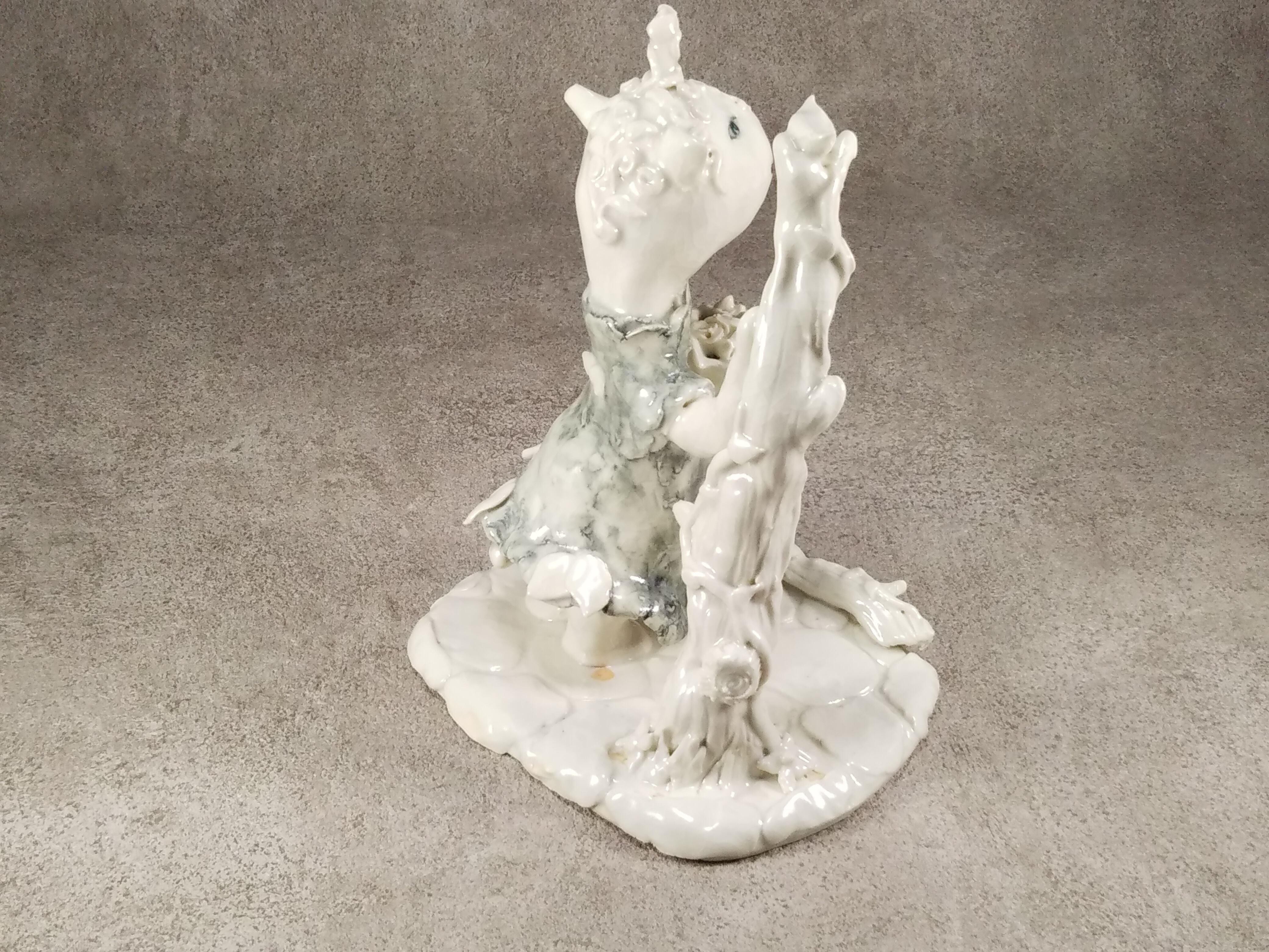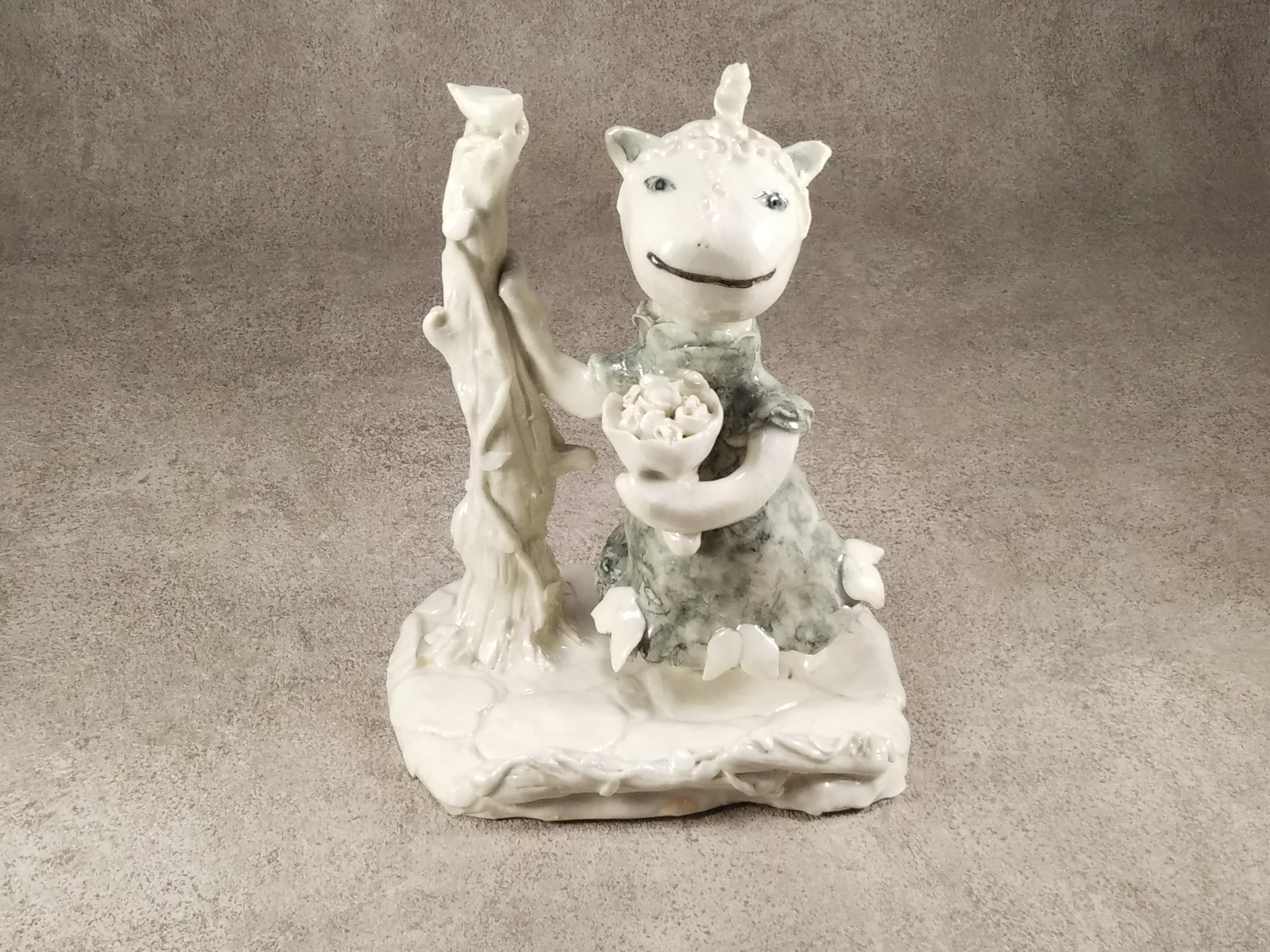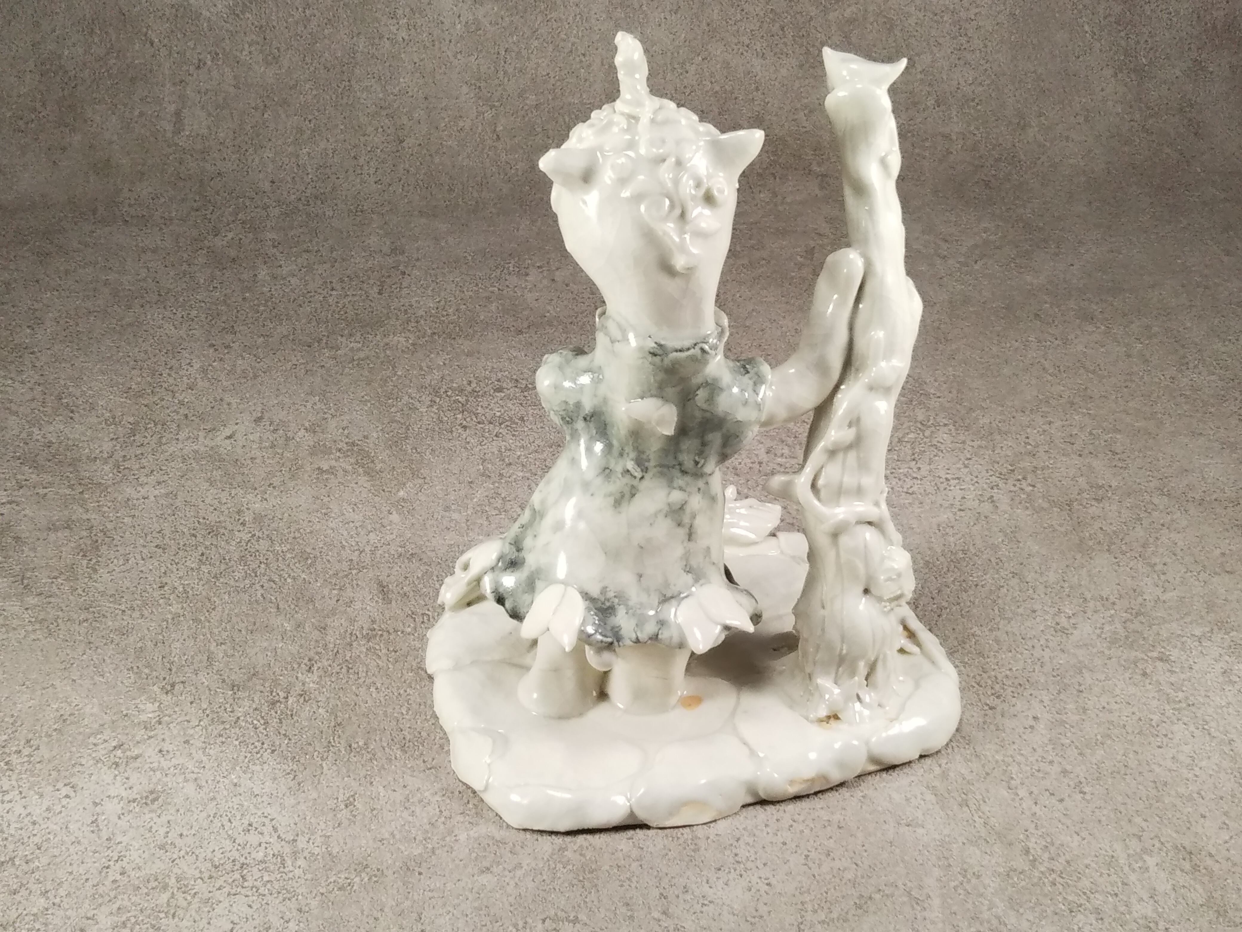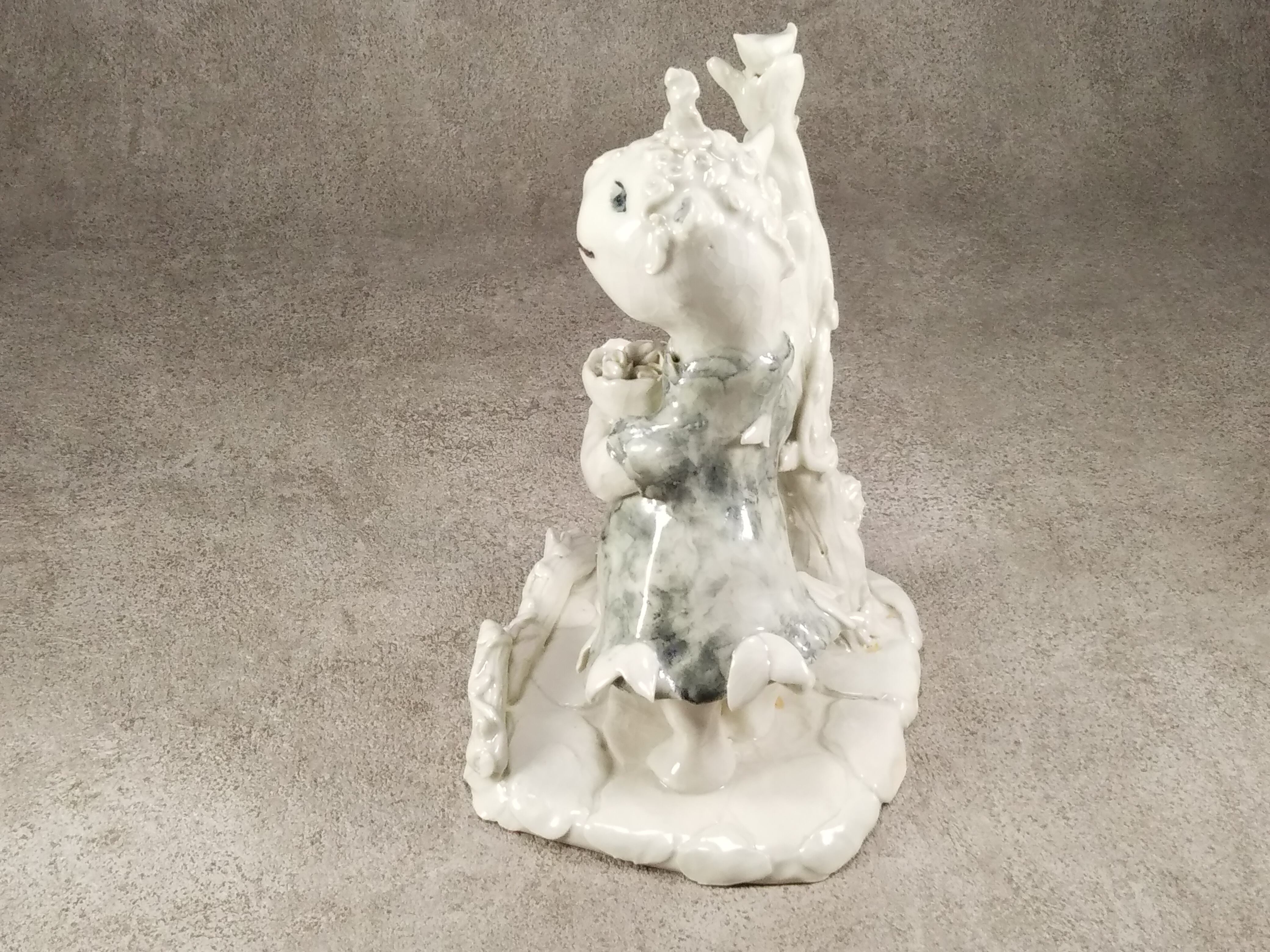 この可愛らしい置物は、手づくりのため世界に一つだけの存在。美しい陶器の質感と繊細なディテールが施されています。まるで森から飛び出してきたかのような妖精です。
